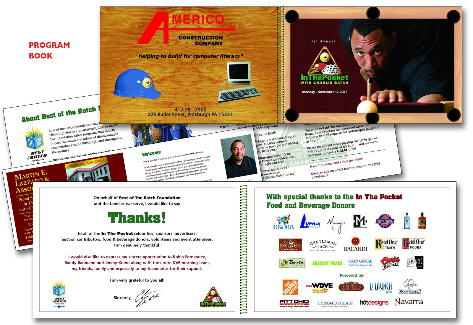 In the Pocket with Charlie Batch was a new idea for a fundraiser. Charlie Batch, through his Best of the Batch Foundation, involved the Pittsburgh Steelers. They had all agreed to attend and play pool, ping pong or poker with the event attendees to raise funds for the foundation.